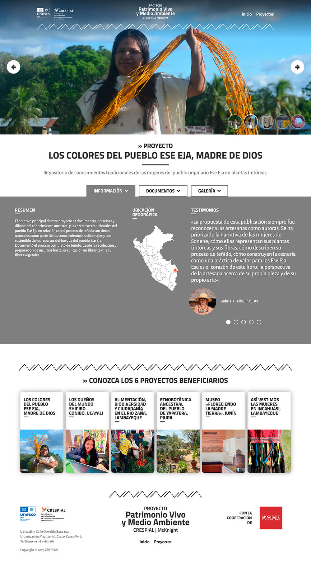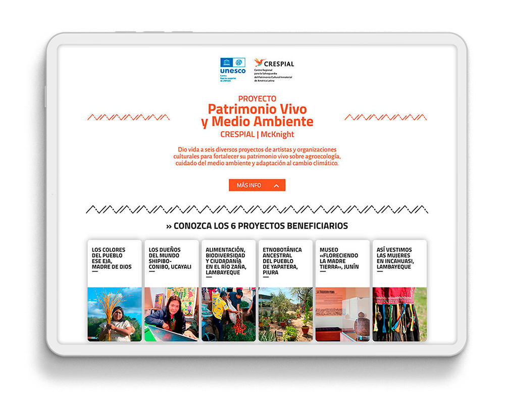 Se trató de crear un micrositio repositorio del proyecto «Patrimonio Vivo y Medio Ambiente», ausipciado por la Fundación McKnight y dirigido por Soledad Mujica Bayly, especialista en patrimonio inmaterial.